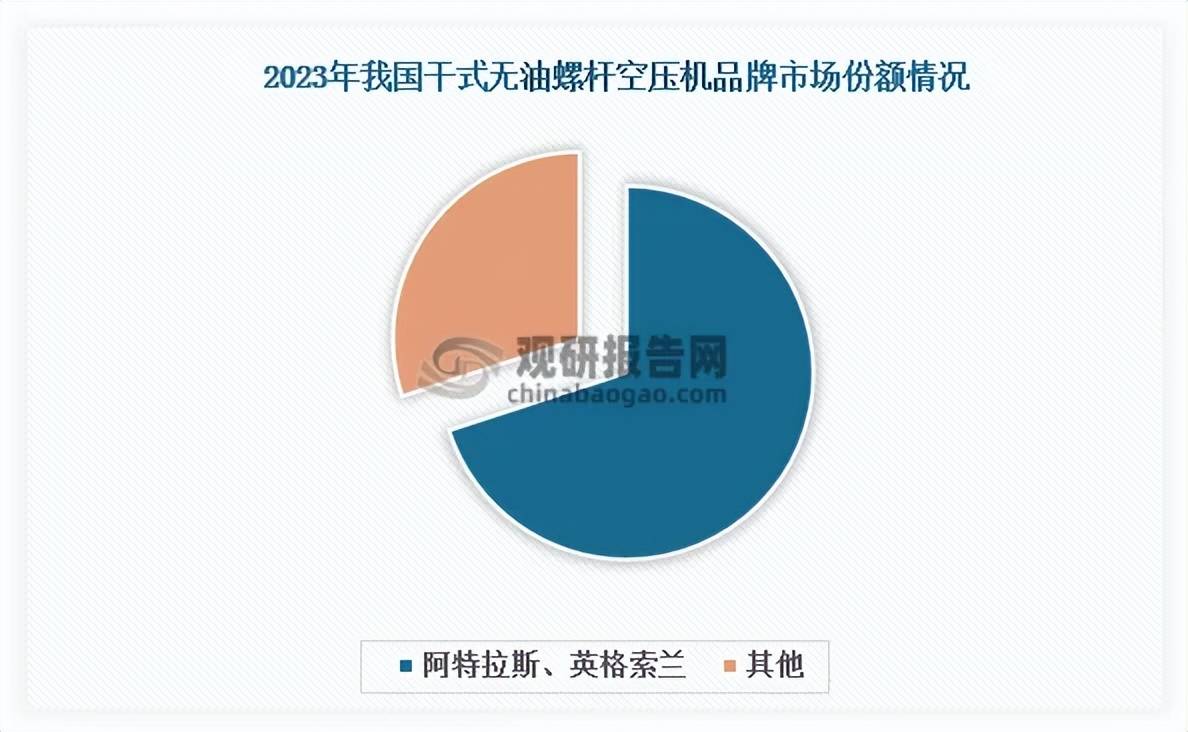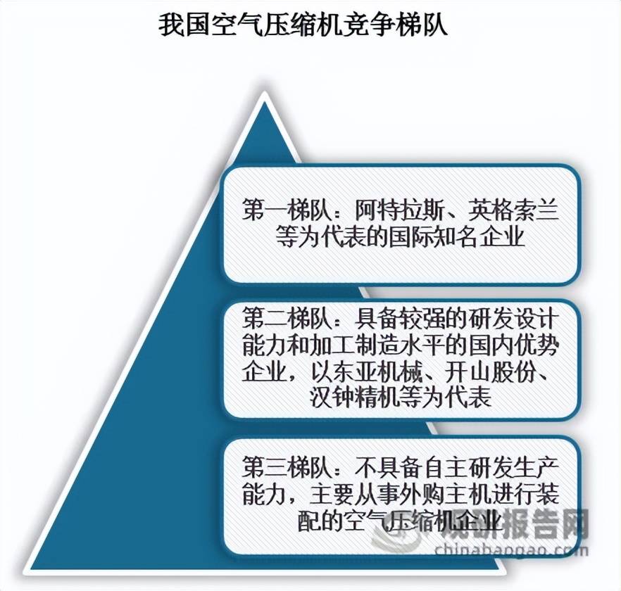 暂时邦内气氛压缩机行业逐鹿呈三层梯队体例。第一梯队是以阿特拉斯、英格索兰等为代外的邦际着名企业。这些企业进入我邦气氛压缩机市集较早,依据专用性强的临蓐装备与身手体例修筑起重心壁垒,依托成熟的品牌地步和完满的拘束体例积攒了较高的客户老实度,正在高端市集霸占领先位置。比如正在干式无油螺杆空压机这个细分市集,2023年阿特拉斯、英格索兰两大邦际巨头合计市集份额跨越70%,霸占绝对上风。